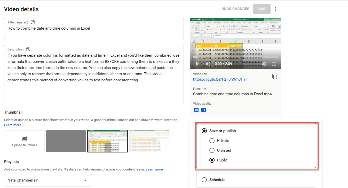 There are three visibility options for each video you upload to YouTube: Private, Unlisted, and Public. You choose this setting when first uploading, but can always change it later as well.